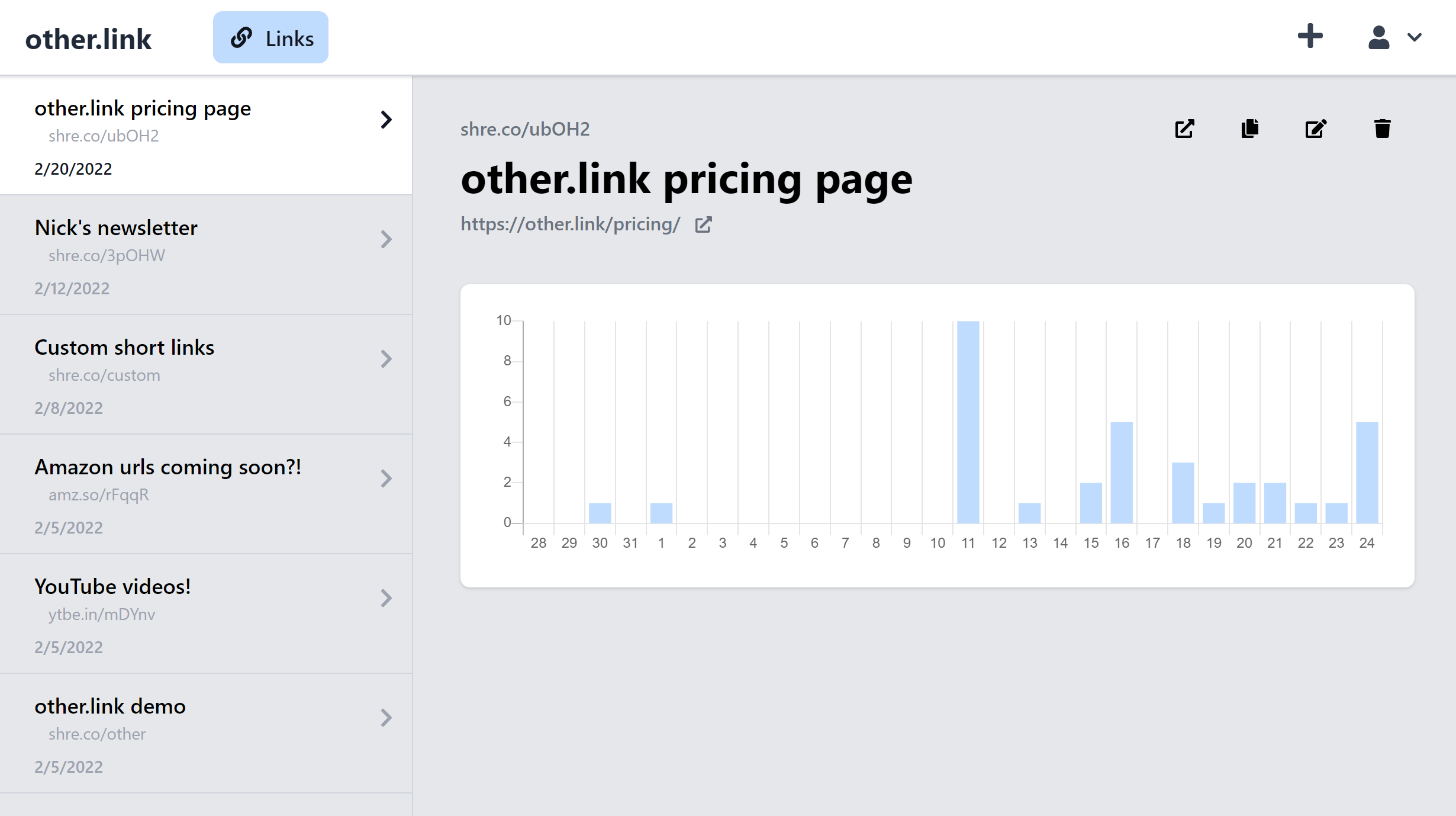 See an example short url: shre.co/ubOH2 👉 other.link/pricing